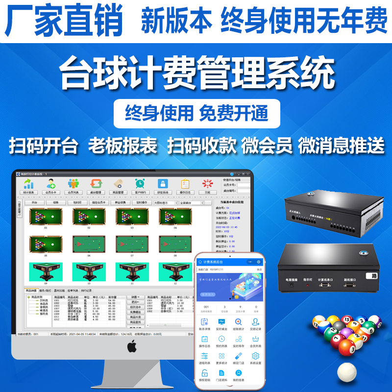 运动/瑜伽/健身/球迷用品^台球^^^山东 菏泽^台球计费系统灯控台球室管理软件海浪台球厅自助收银收费计时系统