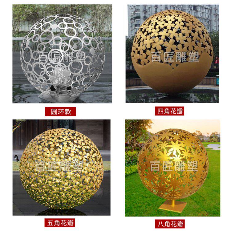 高档不锈钢发光镂空球雕塑园林景观户外水池金属铁艺圆球抽象创意热门设计联盟服务商