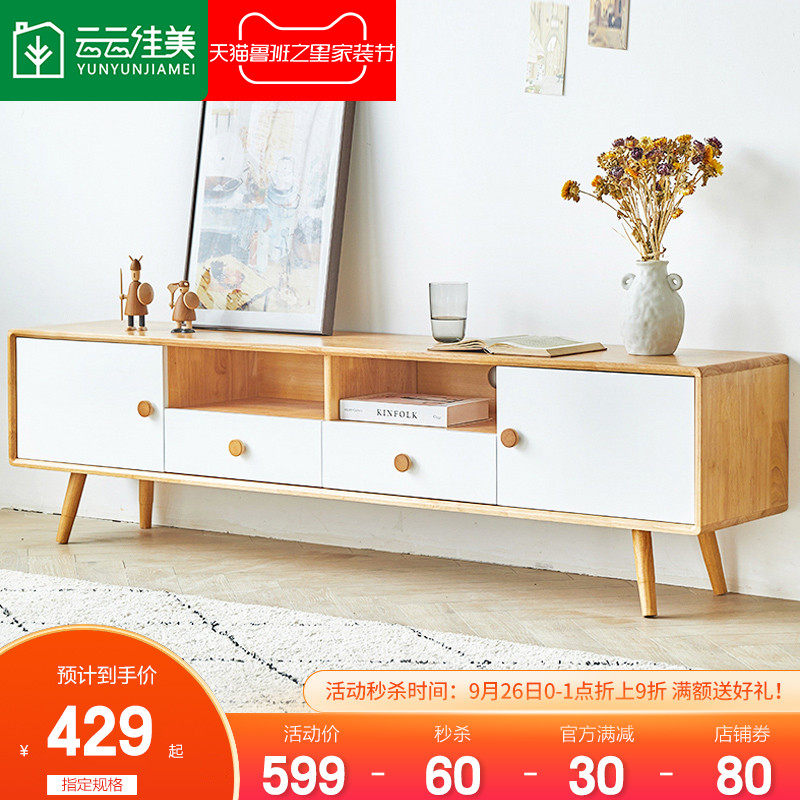 纯实木北欧原木电视柜简约现代茶几组合小户型家用地柜厅柜影视柜热门设计联盟服务商