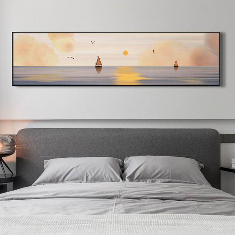 主卧室床头装饰画现代简约轻奢风温馨房间布置挂画横幅大海风景画热门设计联盟服务商