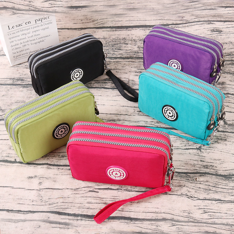 女士三层拉链手机零钱包女帆布长款钱包简约小手包布艺手拿包小包热门设计联盟服务商