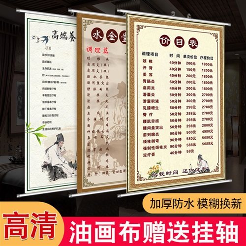 中医养生馆理疗价目表海报定制美容院项目价格表设计制作广告墙贴热门设计联盟服务商