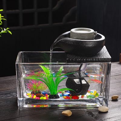 创意流水玻璃鱼缸摆件办公室客厅景观喷泉招财风水轮家居装饰品热门设计联盟服务商