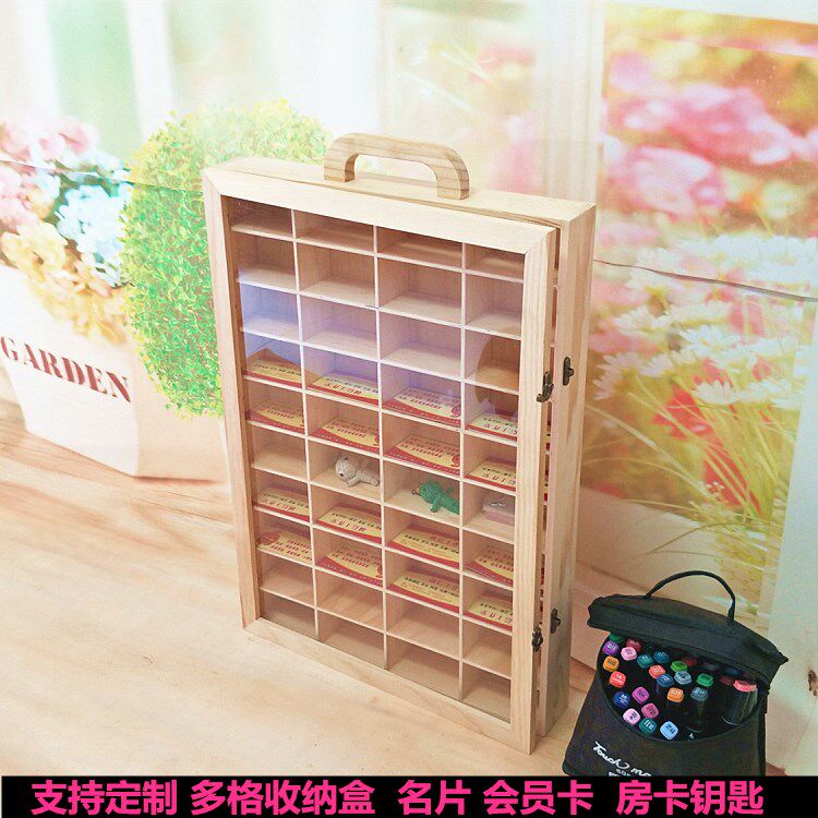 可定制zkka小格子木制名片收纳盒电子钥匙整理木盒印章40格风火轮热门设计联盟服务商