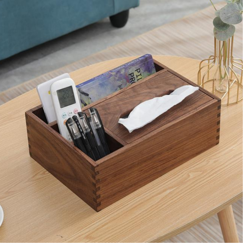 胡桃木纸巾盒客厅轻奢遥控器收纳盒多功能实木餐巾纸抽纸盒设计感热门设计联盟服务商