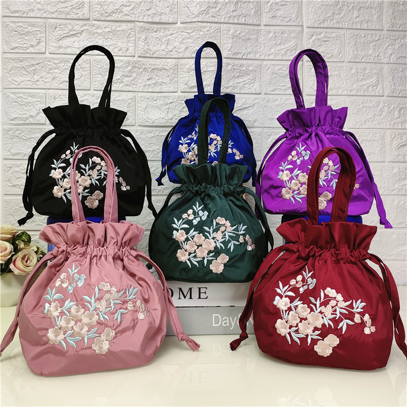 2022新款绣花抽带水桶包丝绸布艺妈妈小包包刺绣手提包零钱手机包热门设计联盟服务商