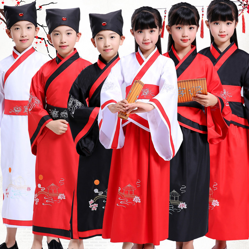 儿童书法礼仪文化服装幼儿毕业汉服国学演出服男女童古装改良曲裾热门设计联盟服务商