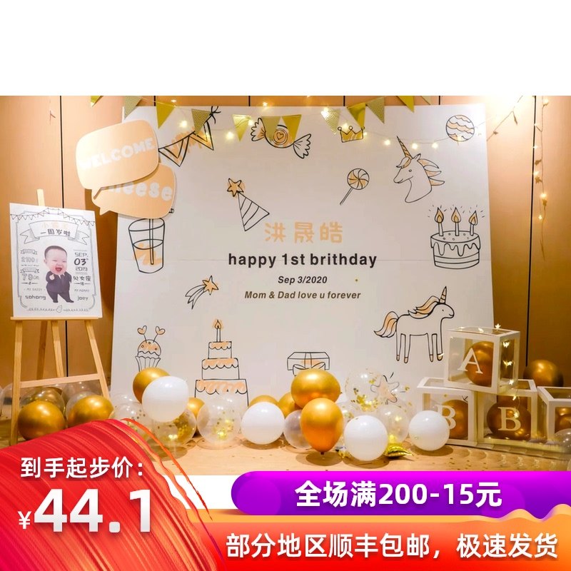 ins生日背景布成人儿童宝宝周岁满月宴派对布置墙海报定制甜品台热门设计联盟服务商