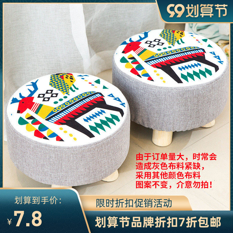 [新品]凳子卡通全实木家用矮凳换鞋凳布艺板凳圆凳子欧式坐墩方圆热门设计联盟服务商